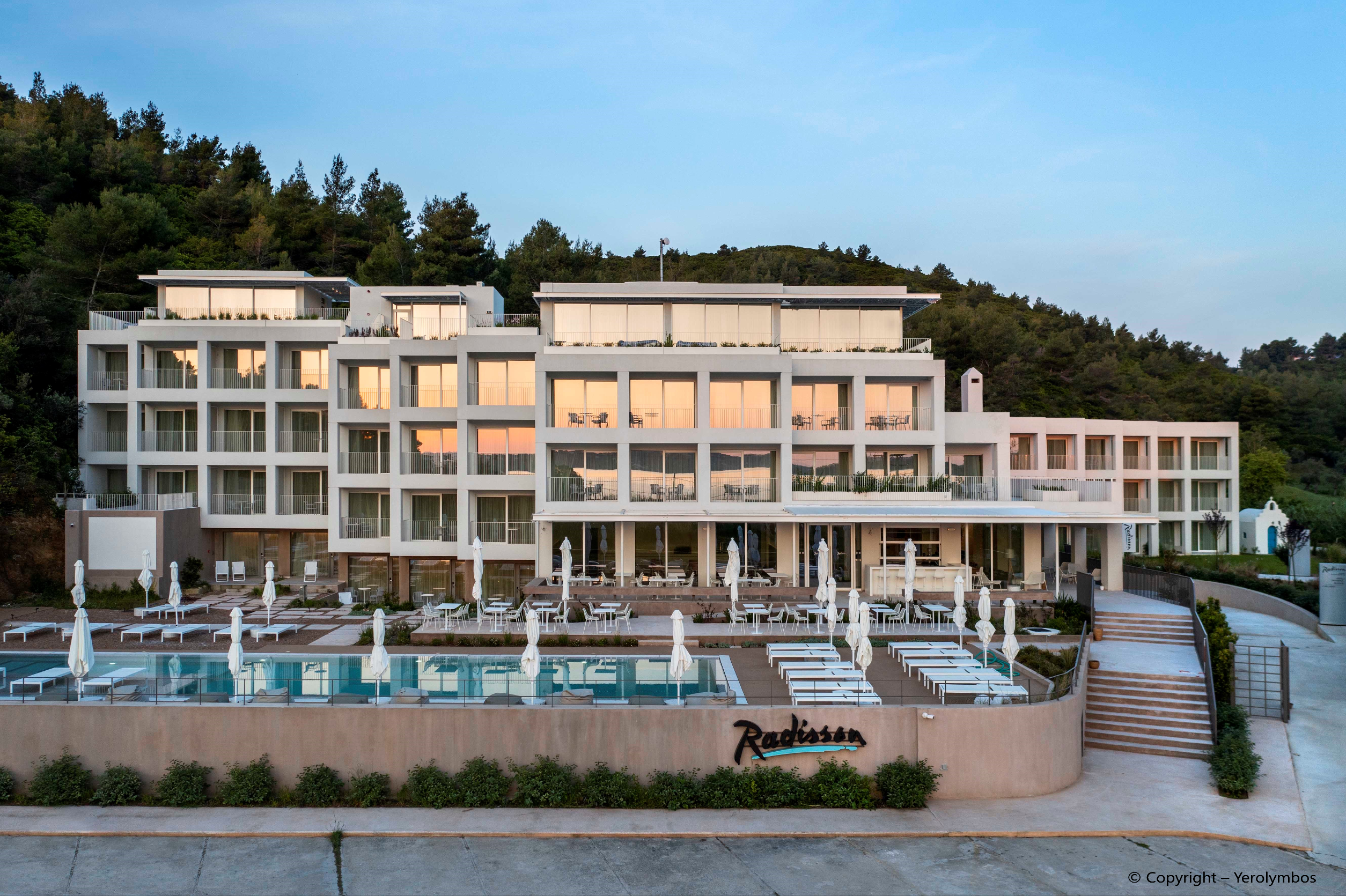 4* hotel situated in Kanapitsa, at the southern part of Skiathos island. The hotel is located just 150 meters away from the beach and 8 kilometers away from the main settlement of Skiathos. It consists of four (4) buildings in a land plot of 10.454.78 sq.m. and includes 84 rooms, a chapel, a restaurant, a personnel building and one swimming pool. The hotel is leased to Hotel Brain S.A.